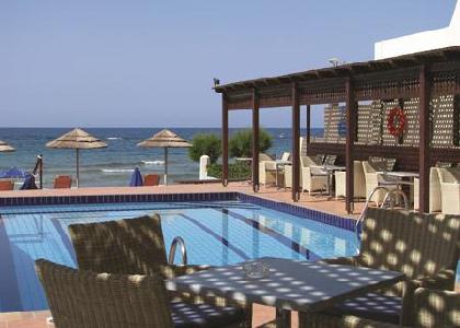The beach hotel Stalis Hotel is located right on a sandy beach. At the beach, there are sun umbrellas and sun loungers for a fee. The city Chersonissos is approx. 4 km away. A supermarket can be reached after around 15 m. There are restaurants and bars within a very short distance of the hotel. For medical treatment in emergencies there is a hospital around 35 km away. The airport (HER) is approx. 30 km away. Another airport (CHQ) is located approx. 177 km away.