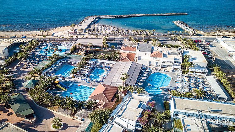Nestled on the north side of the picturesque island of Crete, Stella Village Seaside Hotel welcomes you to a haven of relaxation and family-friendly enjoyment. Just a few meters from the sandy beach of Analipsis, this hotel boasts a prime location surrounded by vibrant gardens. With two large swimming pools, a water park, multiple dining options, sports facilities, and a spa, Stella Village Seaside Hotel promises an unforgettable holiday experience under the warm Greek sun.