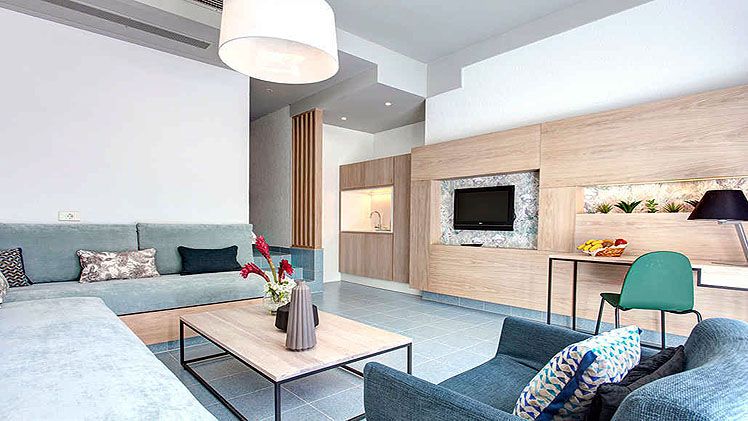 This fantastic 4-star Apartahotel is right on the beachfront with direct access to the beach. This ideal location and excellent accommodation makes us the best choice for a family holiday. The Suitehotel offers its guests a wide range of cuisine which is available throughout the day. There is a delicious breakfast buffet, which also has our spectacular cooking show. At lunchtime our poolside Snack Bar is the ideal place to enjoy excellent food with all the family.