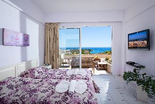 Overlooking the endless blue of Agia Pelagia Bay, Heraklion, Crete, the Sunday Life hotel is found on a hillside, spreads over five levels with steps connecting them from every side. At the very top level, the little church of Saint Ioannis the Xenos gases the Cretan Sea. Only a ten minute walk separates the Hotel from the lively and cosmopolitan village of Agia Pelagia and the main beach of the area. The colorfully decorated Hotel is a well-curved jewel waiting to be explored by couples and families alike. Its indoor and outdoor areas of the restaurant, the pool bar as well as the fully equipped gym complement it and offer guests endless hours of enjoyment, relaxation and the opportunity to escape from their daily routine.