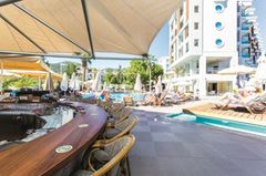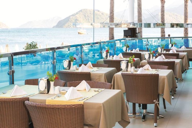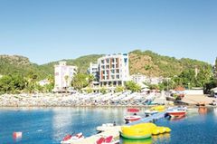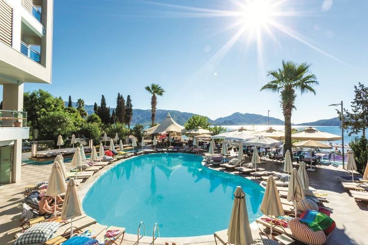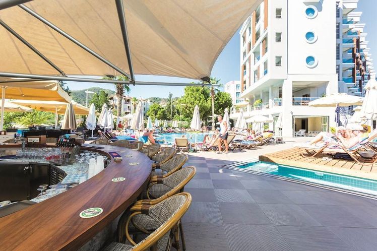 The Hotel Sunrise is on the beachfront of the bustling resort of Marmaris. It has comfortable accommodation with a good range of onsite facilities, and a good selection of bars, shops and restaurants set along the nearby promenade. The setting is hard to beat: a glance behind you and you’re rewarded with stunning views of pine-clad mountains, while to the front you’ll see golden sands and sapphire seas. There is a large restaurant serving buffet meals, as well as a smaller a la carte restaurant. There is a poolside bar and beach bar, and an English style pub with large screen satellite TV. There is an outdoor swimming pool, with a separate children`s pool.