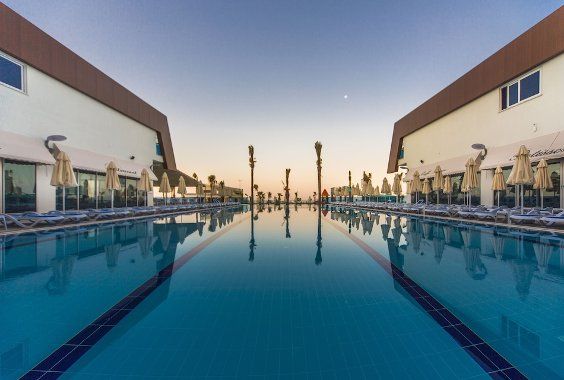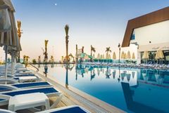The hotel facilities and services include 24 h reception, WiFi in the lobby area, meeting facilities, restaurants and bars, disco bar, outdoor pool, water slides (certain hours), children´s pool and indoor pool. It also features a Spa centre with Turkish bath, sauna and massages service (all with extra charge), Fitness centre, table tennis, billiards (with extra charge), animation activities, mini club, playground and water sports (some with extra charge).