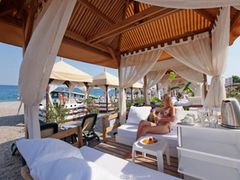 Approx. 200 m from the private sandy beach is located in the hotel Swandor Kemer. At the beach are sun umbrellas and sun loungers free of charge. The nearest town is Kemer (Antalya around 60 km). A supermarket and other shopping facilities can be reached after 6 km. It is 6 km from the hotel to the nearest bars and restaurants. Also, the nearest disco is around 6 km away. Further entertainment facilities such as a cinema and a theatre are approx. 6 km away. For mobility, there is a taxi rank (around 20 m away) and a bus stop. For medical treatment in emergencies, there is a hospital around 6 km away.