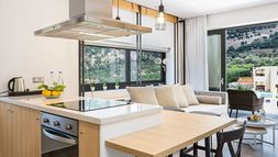 T Hotel Premium Suites is a 4 star hotel in a tranquil location amidst olive trees in the village of Bali, in Rethymno, approximately one km from the beach and 50 km from Heraklion’s international airport. This brand new resort provides upscale suites with two bedrooms, all well-appointed with a fully equipped kitchenette, smart TV and a furnished balcony. Three swimming pools, a tennis court, a poolside bar and α restaurant are also at the guests’ disposal.