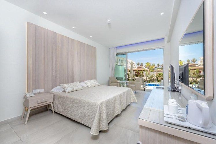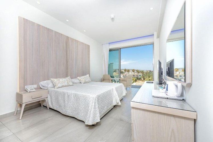 The Deluxe Room have an indoor 33 sq. meters size(excluding the balcony) featuring modern fresh furniture and design, can be a double or twin bed(the third bed is a quality extra bed). The balcony size is 6 sq. meters overlooking the partially the town of Ayia Napa.