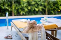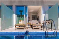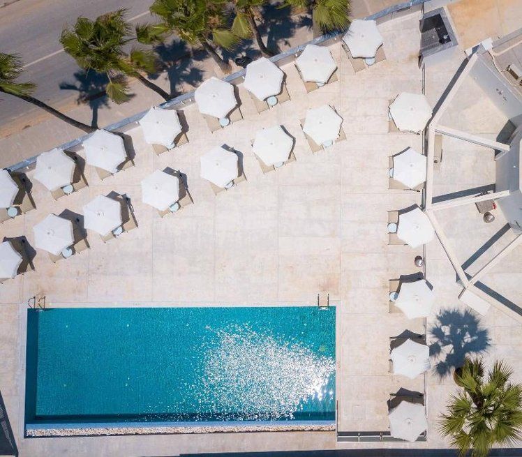 The Sea View Room have an indoor 36 sq. meters size(excluding the balcony) featuring modern fresh furniture and design, can be a double or twin bed(the third bed is a quality extra bed). The balcony size is 6 sq. meters including their deluxe sunbeds and ending directly in their own private pool.