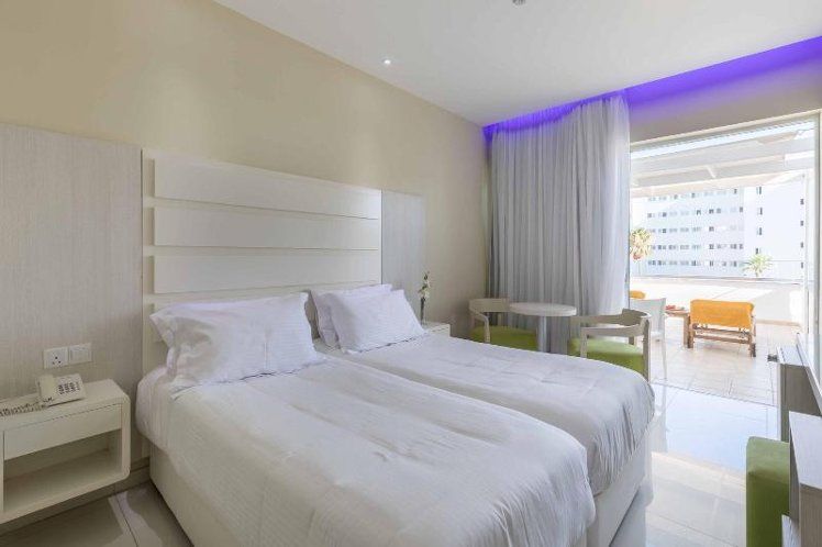 The Twin land view rooms have an indoor 26 sq. meters size(excluding the balcony) featuring modern fresh furniture and design, can be double or twin bed(third bed is a quality extra bed). The balcony size is 5 sq. meters overlooking the town of Ayia Napa.
