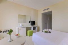 The Side Sea View Room have an indoor 24 sq. meters size(excluding the balcony) featuring modern fresh furniture and design, can be a double or twin bed(the third bed is a quality extra bed). The balcony size is 5 sq. meters overlooking partially the beach.