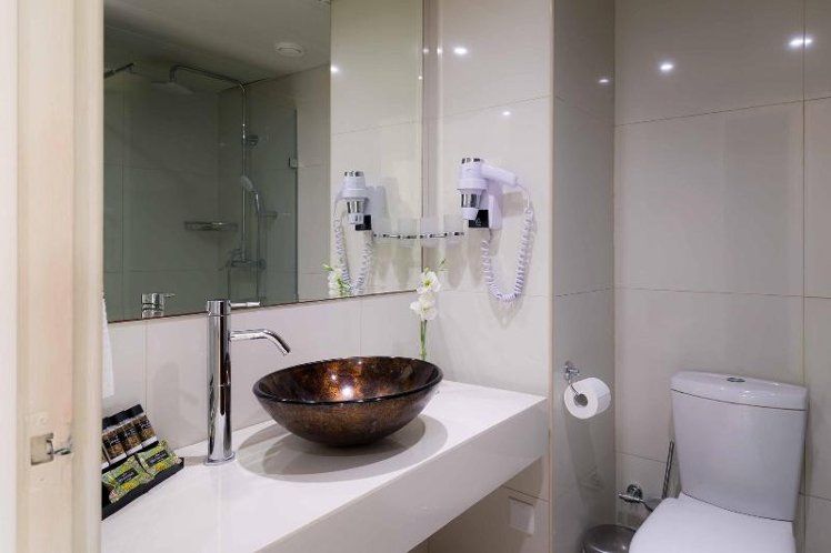 The Sea View Room have an indoor 27 sq. meters size(excluding the balcony) featuring modern fresh furniture and design(the third bed is a quality extra bed). The balcony size is 5 sq. meters overlooking partially the beach.