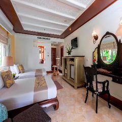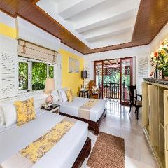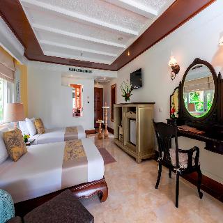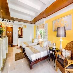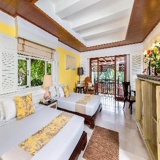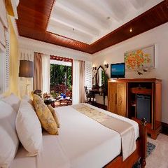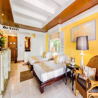 This beach club resort is perfect if guests are seeking a tropical paradise. It is located at Nakalay Bay, on the beach on the sunset side of the island, just 5 min away from the most popular spot, Patong Beach, with its sensational nightlife, entertainment and shopping areas. Phuket International Airport is 40 km away, while the distance to Phuket town is 25 km. The resort features a lobby with 24-hour reception, a safe and currency exchange facilities. There are café, bar and restaurant. Conference facilities, room and laundry services and Internet access are provided. The guestrooms are located in a traditional Thai setting with direct access to the swimming pool. The rooms are en suite with a shower/bathtub, balcony or terrace, whilst the bedrooms are furnished with a double or king-size bed. Further amenities include TV, individually regulated air conditioning and more.