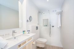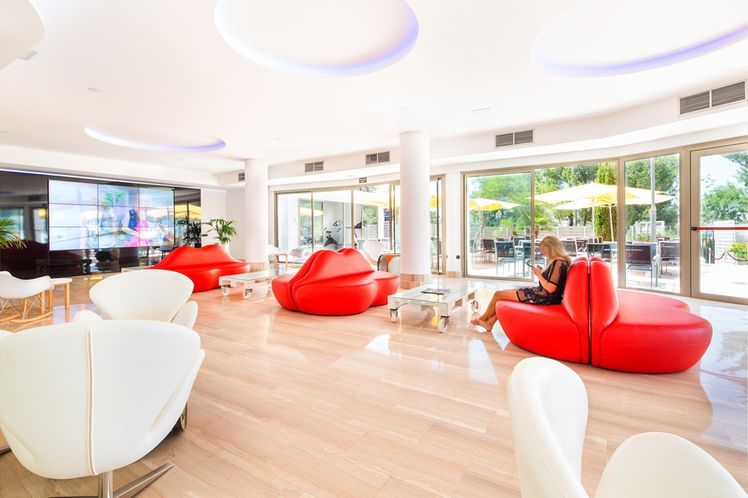 Approx. 150 m from a sandy beach is situated the Adults only hotel THB Ocean Beach Hotel. At the beach are sun loungers and sun umbrellas for a fee available. The town San Antonio Centre is around 200 m away (Ibiza City around 23 km). It is only 200 m from the hotel to the nearest bars and restaurants. For evening dancing you will find a nightclub in a distance of approx. 1 km. The following attractions can be reached from the hotel: Es Paradis Club (approx. 900 m away), Mambo Cafe (approx. 2 km away), West End (approx. 1,2 km away), Amnesia Club (approx. 10 km away) and Cala Bassa Beach (approx. 10 km away). For mobility during your holiday, there are a taxi rank as well as a bus stop in a distance of around 50 m. For medical treatment in emergencies there is a hospital around 16 km away.