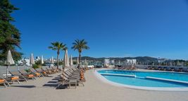 In the outdoor area of the Mediterranean-style hotel you will find one pool. Here, there are sun loungers and sun umbrellas for free available. At the pool bar you can get refreshing beverages.