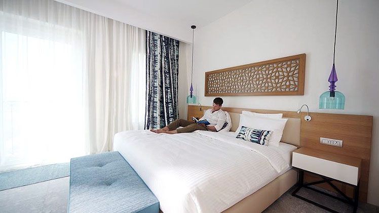 Buffet breakfast and dinner is served at ”The Restaurant”with a contemporary Mediterranean twist. Set on the marina promenade with endless sea vistas, ”The Spot”offers a fine selection of Asian inspired snacks and light meals in an Al-Fresco setting. The elegant ”Lobby Bar” offers refreshments and afternoon tea, while ”The Rok” beach bar serves up light bites and cocktails.