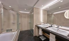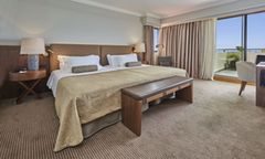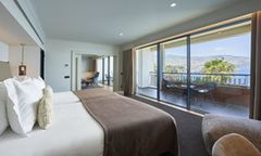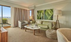 The Executive Suites are equipped with individually controlled air conditioning and heating, satellite TV, minibar, direct dial telephone, tea & coffee making facilities and in room safe. Spacious marble cloakroom with twin washbasins, separate bath and shower, scale, hairdryer and make-up mirror and whirlpool. Additional bathroom for guests. Bedroom with double queen size beds. Separated lounge with sofa and arm chairs. Large private balcony with furniture. View over the Atlantic Ocean and gardens of the hotel.