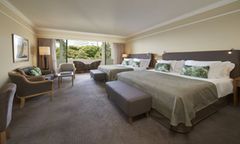 The regular Twin rooms at the Cliff Bay hotel are equipped with individually controlled air conditioning and heating, satellite TV, minibar, direct dial telephone, tea & coffee making facilities and in room safe. Bedroom with double queen size beds, seating area with sofa and arm chairs.