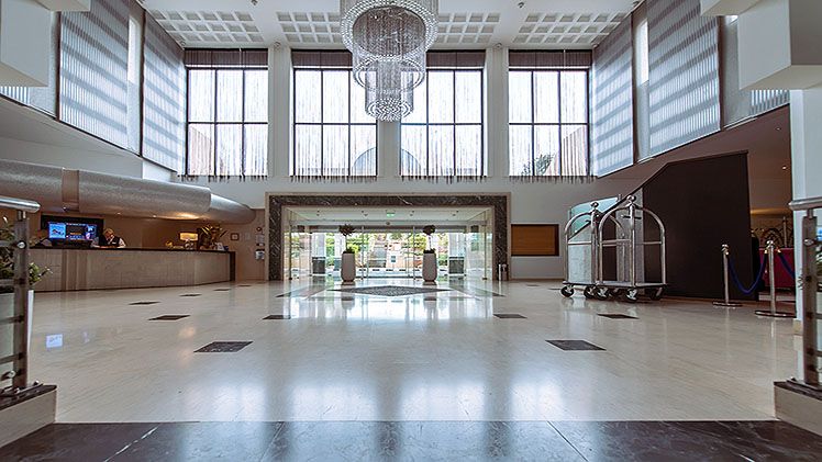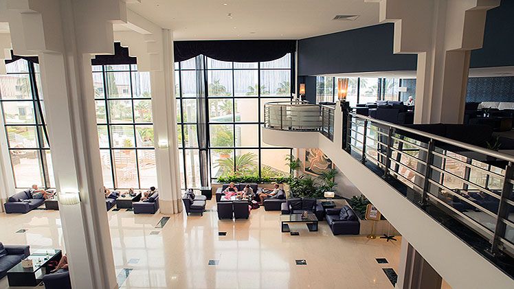 An impressive and beautiful lounge-style 2 level atrium lobby, enclosed on one side by a glass curtain conservatory, offers a panoramic and relaxing view of the sea.