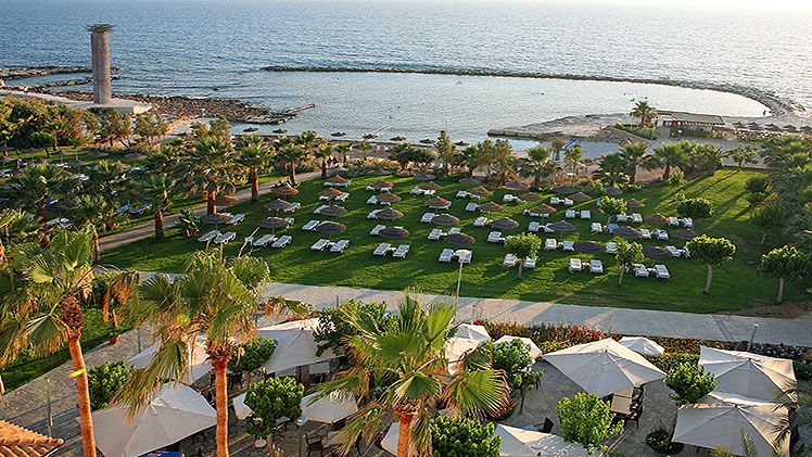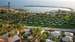 Directly on the beach of Chlorakas, Paphos, the hotels are by car drive only 5 minutes from the picturesque harbor of Paphos and 20 minutes from the airport. The St. George Chapel and Boat, two historical landmarks of the area, constitute an integral part of the hotel grounds and design.