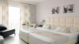 Sited on 7 acres of land, one-third of which are landscaped gardens, the hotel is bordered by rolling hills on the one side and the Mediterranean Sea with its magnificent sunsets on the other. Away from the mainstream tourism, this location is perfect for those seeking rest and relaxation combined with Luxury. Within this 4-star hotel, our guests are provided with all the requirements for a carefree holiday in style.