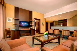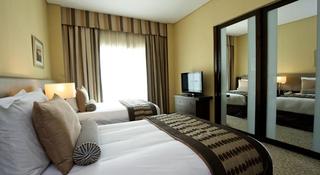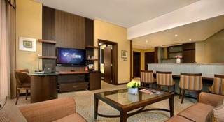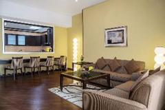 Conveniently located in the Barsha Heights area, facing Internet City and Media City, this modern hotel at Al Barsha blends residence-style privacy and attentive hotel services with a dynamic downtown setting. The hotel is ideal for business executives and families looking for a comfortable and convenient hotel or suite at Al Barsha in Dubai, either for a short business trip, an extended stay assignment, or just a weekend in this exciting city. This hotel includes a large choice of rooms and suites, all completely equipped to guarantee a comfortable stay and including a seating area to share unforgettable moments with the loved ones. The onsite dining options range from classic to contemporary, but all serve a choice of delicious specialities that will tempt all palates.