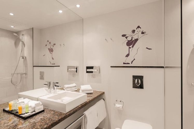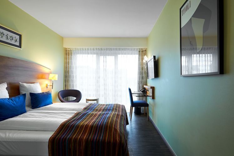 The hotel has altogether 679 nicely furnished rooms, all with air conditioning and free Wi-Fi. Some rooms are decorated with a mere hint of the Tivoli theme, others more so. A complete floor has been reserved at Tivoli Hotel for families travelling with children, each room depicting a particular fairground theme, many with connecting doors and space for a third or fourth guest. Standard room amenities for hotel guests include: toilet with shower/bath, hair dryer, minibar, telephone, radio, desk and chair, coffee & tea facilities, flat-screen TV and safety box.