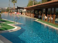 Food and entertainment: The Hotel is booked as Self-Catering accommodation with options for Bed and Breakfast and Half Board. The Hotel restaurant serves delicious Turkish and Mediterranean meals with indoor and outdoor seating and snacks around the pool.