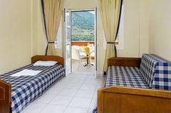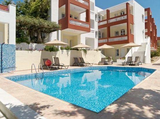 Troulis Apartments consist of 59 apartments and studios, provides, Sea View Main Restaurant with plasma TV – meals are served on Buffet Style,Sea View Roof Garden Cocktail’s Bar – open in high season, 2 Swimming Pools with Sun decks and umbrellas, Parking space, and also a the beautiful Sandy Beach Varkotopos bay 80 meters walking distance from the hotel.