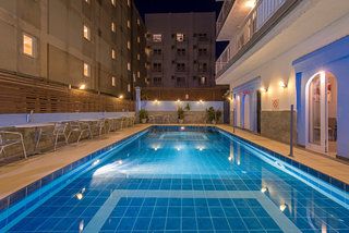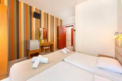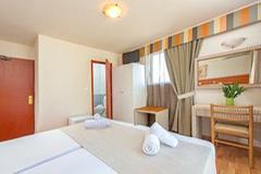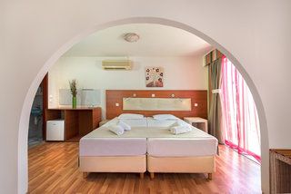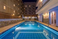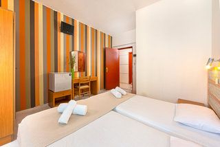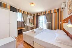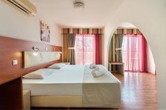 This city hotel is ideally situated in the center of Rhodes city’s tourist district, just 300 metres from the beach. It is surrounded by numerous restaurants, bars and cafés, as well as leisure and entertainment options. Visitors are drawn not only by the fabulous climate and beaches, but also by the medieval buildings and castle, as well as its vibrant nightlife. Facilities include a compact swimming pool and sun deck, bar and coffee shop, as well as a fabulous breakfast buffet. The friendly staff are on duty at reception 24 hours a day and offer services such as car hire and many more. There is a taxi rank and bus station nearby. The accommodation types range from Economy Standard Rooms to Doubles Triples rooms, all with an en-suite bathroom and air conditioning at extra change. Many have balconies with city or pool views, a TV and a fridge.