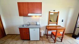A kitchenette with cooking hobs and fridge is included in all the soundproofed studios at the Vergas Hotel Malia. Each comes with a private bathroom with shower. Air conditioning is available upon surcharge.