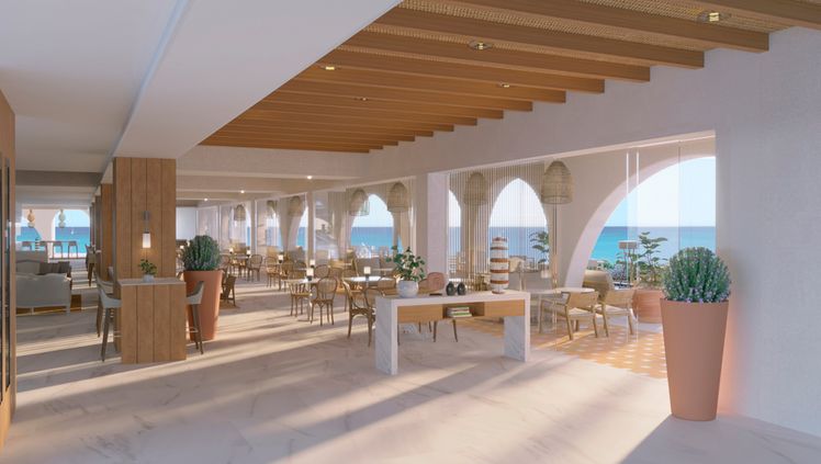 Completely renovated in 2022, the 4-storey beach hotel consists of a main building and 2 adjoining buildings, and has 159 rooms in total. It offers its guests a 24h reception (check-in from 14:00, check-out until 12:00), a lobby with bar, 3 lifts, air conditioning, a safe (for a fee) and a parking area (for a fee). For the meals, there are three restaurants (air-conditioned). You will be warmly welcomed in both the hotel’s bars. WiFi is available for free. For guests with physical disabilities the hotel has a barrier-free access and a wheelchair accessible lift. Room service, laundry / ironing service and medical service are available for a fee.