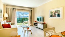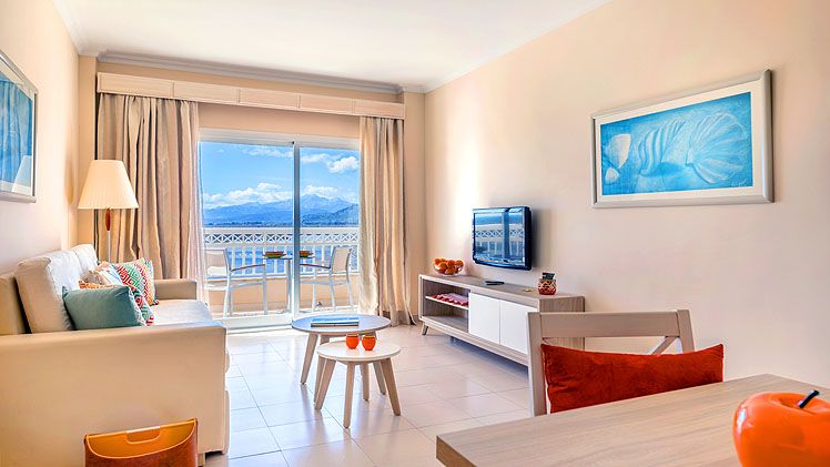 Viva Blue & Spa features 256 apartments with telephone, free WiFi, Satellite TV, air conditioning/heating, music channels, kitchenette (fridge, microwave, coffee machine, toaster, kettle), safe deposit box (with charge), complete bathroom (bath with shower, WC, hair dryer), living room, and a terrace. The complex has 6 apartments available for disabled guests. Baby cot available with charge.