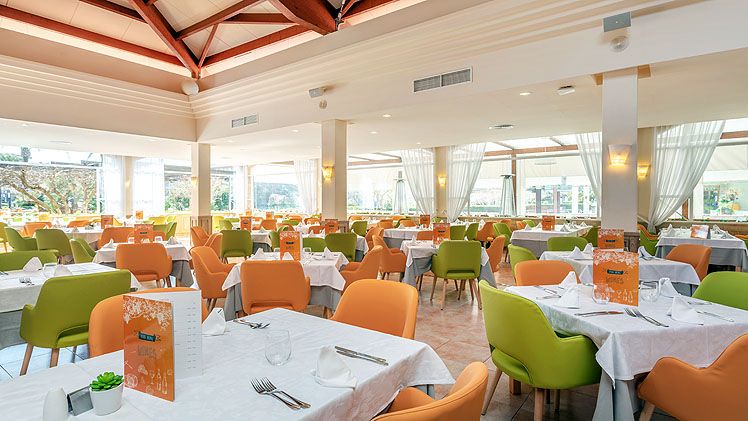Sports, games and activities: Outdoor swimming pool for adults in large landscaped gardens, solarium with hammocks and parasols, chill-out pool (18 years and older), Gym, multi-sports court, Petanque, swimming lessons in high season (with charge), recreational games area, ping pong, yoga and pilates, table tennis, billiards, trekking (charged), facilities for cyclists (bicycle rentals – charged), SPA with relaxation room, sauna, indoor pool, showers, Jacuzzi, massage and physiotherapy (both charged). There is a specific program for adults includes all kind of activities, sport games and water sports, terrace games, horse excursions and more. A variety of sports are available in the area including bird-watching, sailing, windsurfing, water skiing, riding, etc. There are five golf courses in the area in a radius of 40 km offering nine to eighteen holes.