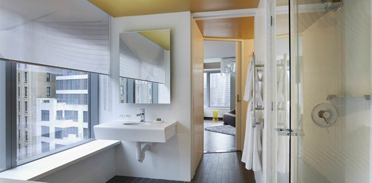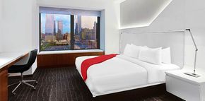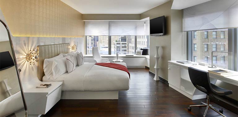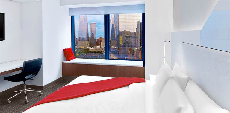 This modern, luxurious, hotel has a great location right in the centre of downtown New York, close to the September 11th Monument, the New York stock exchange, and the Statue of Liberty. Battery Park and the Federal Reserve Bank are also in the vicinity. The hotel offers guests a restaurant, cafeteria and lounge bar. The business centre is open 24 hours a day and apart from the normal services also offers a limousine service. The concierge offers all kinds of tourist assistance and even event planning including weddings. There is also a fitness centre, spa and terrace and massages can be requested in the rooms. The rooms are all air-conditioned and include iPod docks, large safes, cable and wireless internet connection (for a fee) digital TV and DVD player, desk, free press, toiletries, minibar, slippers, robe and a pillow menu. Non-allergenic linen can be requested.