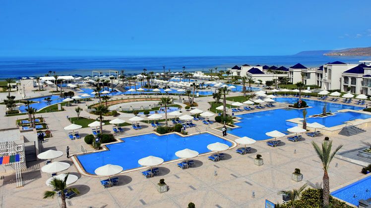 Set in manicured grounds near the town of Agadir, the adults-only White Beach Resort offers a true 5 star experience. Directly facing the beach, and with 6 outdoor swimming pools, you’ll find plenty of places to relax enjoy the sunshine. Rooms are spacious, with free high-speed Wi-Fi, and the hotel offers a varied dining scene, including buffet-style and a la carte restaurants. Active types can take advantage of the on-site tennis court and mini golf course, and when it’s time to unwind, the hotel has a full service spa with a heated indoor pool, sauna and steam bath.