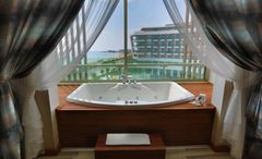 Xoria Deluxe offers an exceptional holiday experience with its striking modern architecture and stunning views from nearly every room. Designed to blend comfort with elegance, this hotel provides a luxurious stay amidst the golden sands and clear Mediterranean waters. Every detail has been meticulously planned to ensure an unforgettable family holiday.