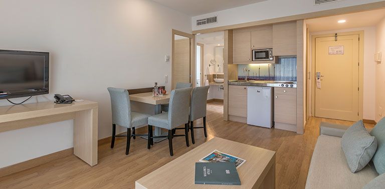 The apartment complex is composed of 3 buildings each with 4 floors and a total of 260 accommodation units. The fully air-conditioned complex offers a wonderful, vast garden area spanning 4,300 m², a stylish foyer with 24-hour reception desk, a hotel safe, a currency exchange counter, lifts, a small supermarket, several shops, a bar and a café.